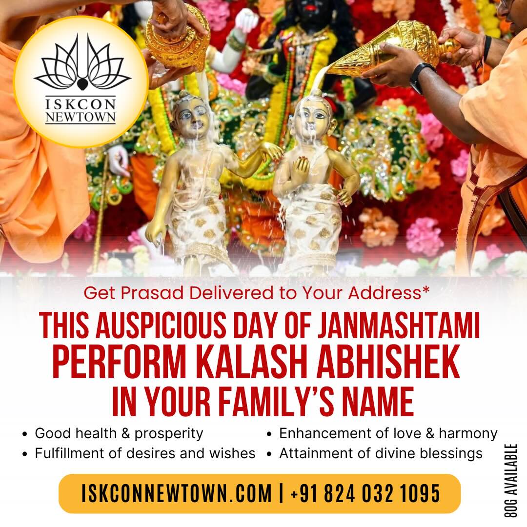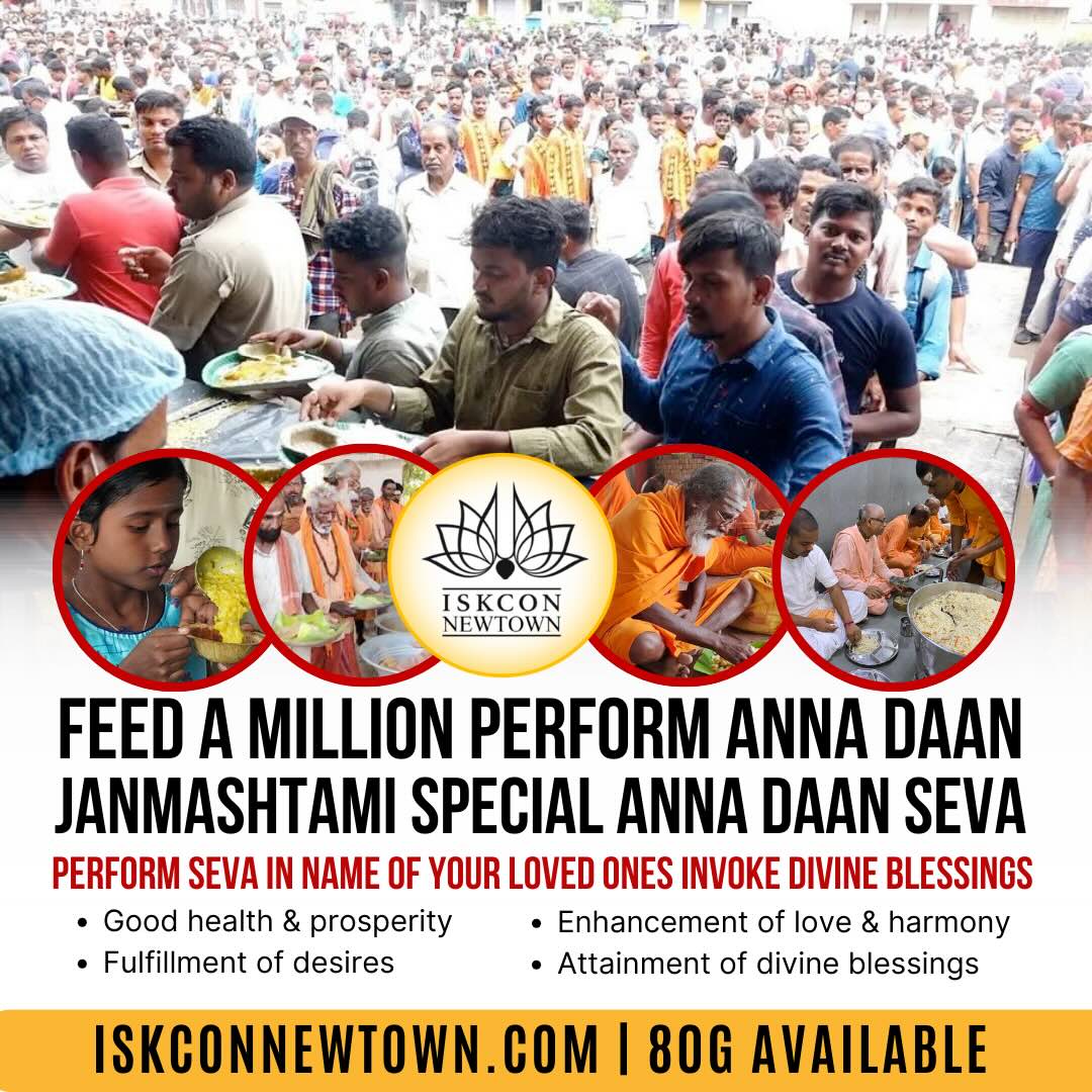 Janmashtami, the divine appearance day of Lord Sri Krishna, is one of the holiest and most spiritually rewarding days to offer charity and seva. Serving the Lord and His devotees on this sacred occasion bestows immense blessings, purifies the heart, and brings peace and prosperity to your family. ISKCON Newtown warmly invites all devotees to celebrate Krishna Janmashtami.
