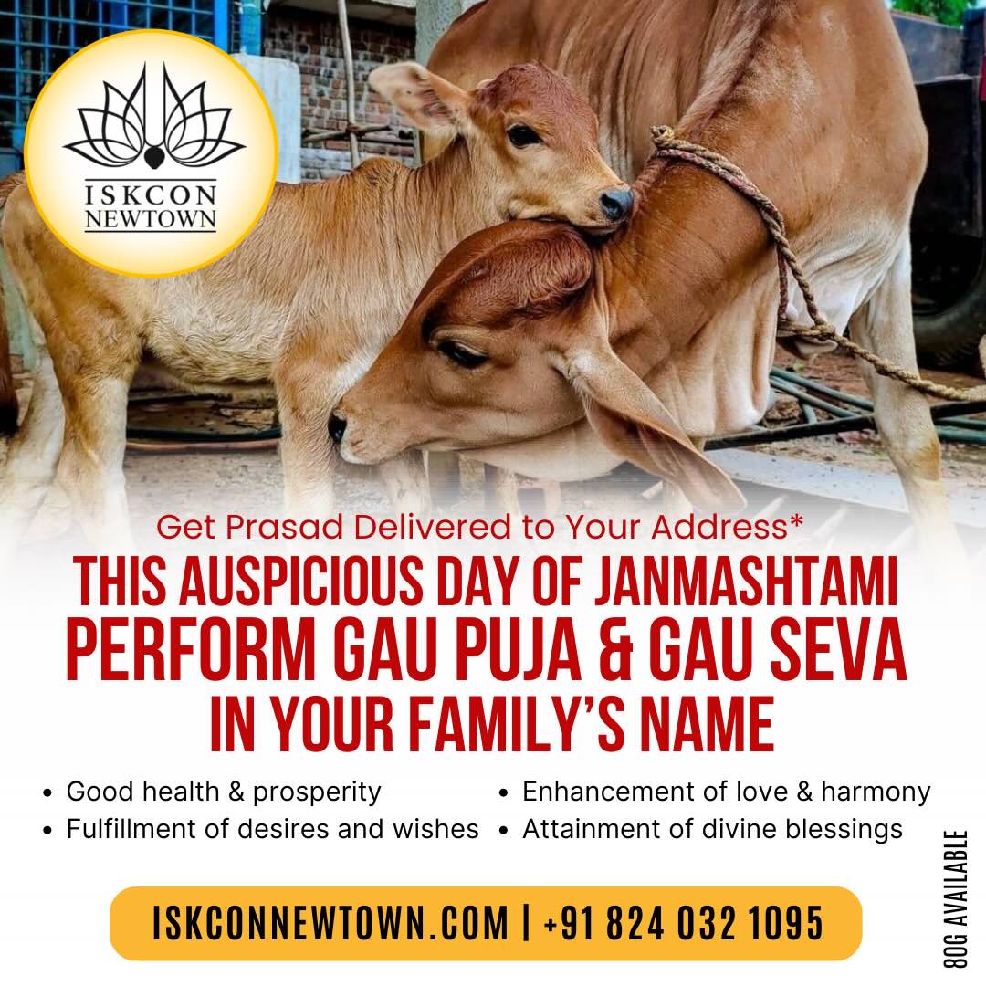 Sponsor Sacred Gau Puja and Gau Seva (Offering food and medicine for cows) on auspecious Janmashtami.