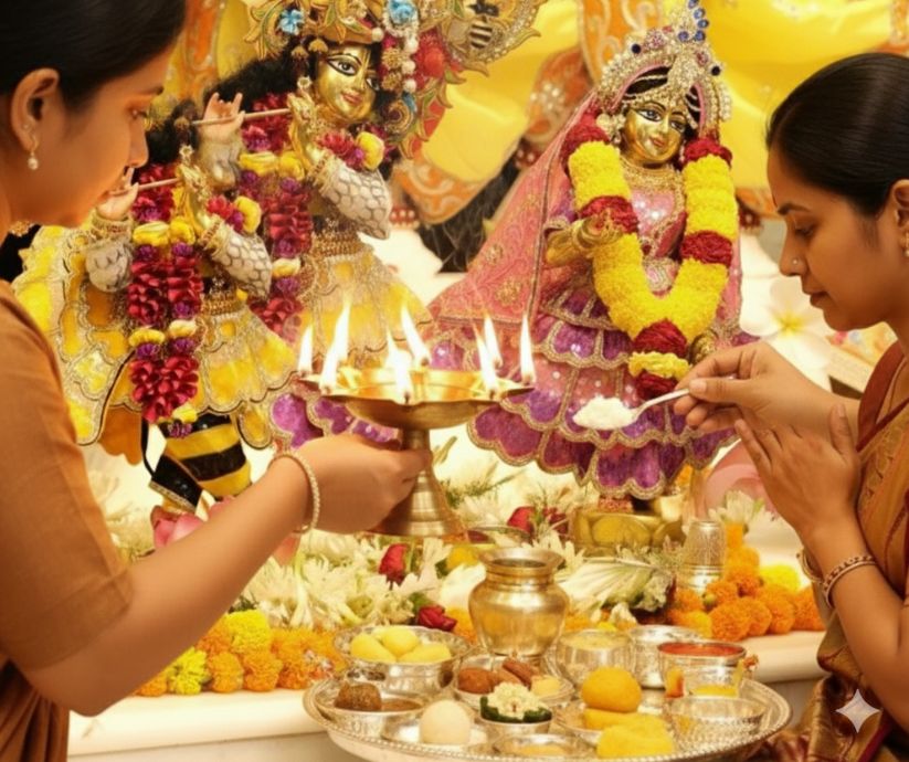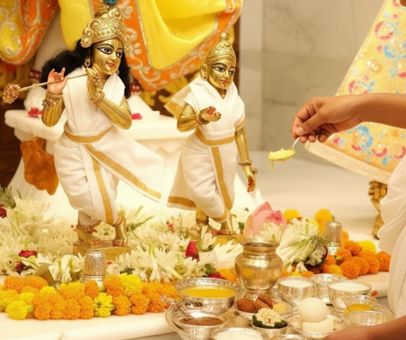Offer sacred bhog to Radha Krishna and receive divine blessings prosperity and abundance.