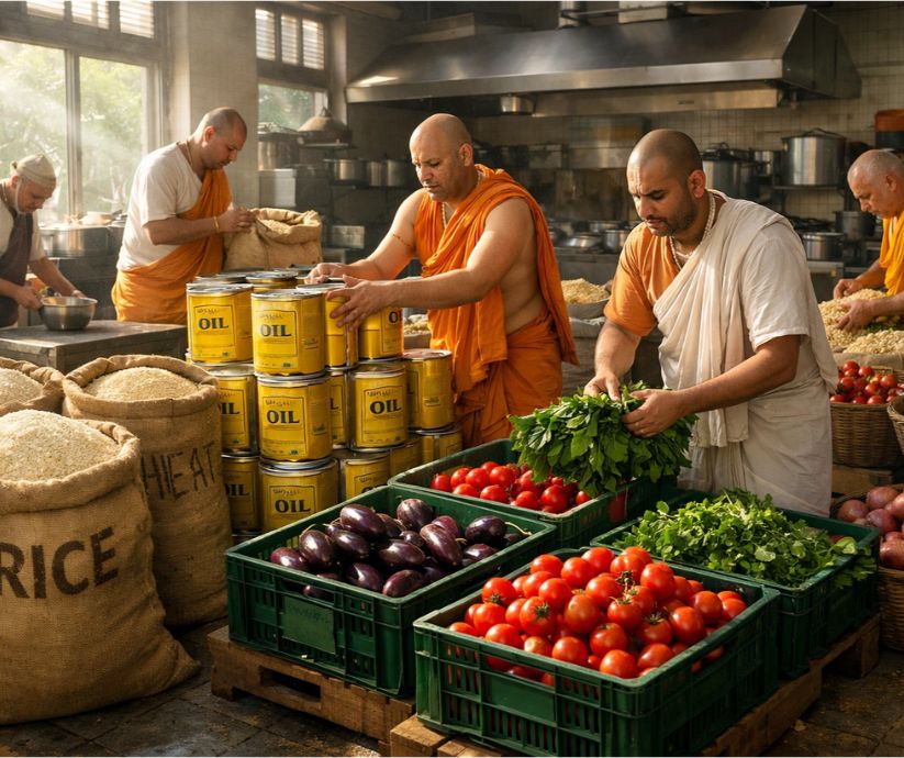Support daily kitchen groceries and bhog ingredients for Radha Rani seva.